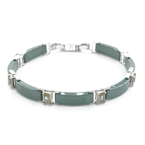 Браслет из натуральной керамики со вставками Султанита. Звенья соединяются с помощью вставок из ювелирного сплава "под серебро" и имеет дополнительное съемное звено. Длина изделия 20см, с дополнительным звеном 22см. Размер звена 20х6мм. Размер вставки Султанита 6х4мм.