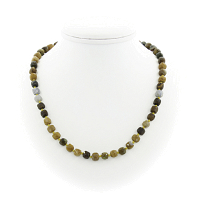 Изящные бусы из натуральной яшмы. В украшении используются бусины ручной огранки. Бусы собраны индийскими мастерами вручную. Длина 50см + удлинняющая цепочка 4см.