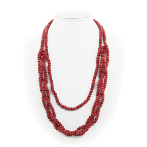 Длинные бусы из натурального красного коралла привлекают своими элементами плетения и станут яркой деталью Вашего образа. Украшение на нити, можно носить в два яруса. Длина бус: 118см. Размер бусины: 6х4мм. Осторожно! Натуральный коралл может красить!