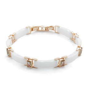 Браслет "Лилу" из белой керамики с Султанитом покрытие под золото, длина 20см