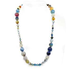 Яркие и гармоничные бусы из натуральных агатовых самоцветов длиной 70см. В этих бусах удачно подобраны граненые бусинки разных размеров от 6 до 14мм.