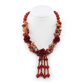 Нежные, очаровательные бусы из натурального сердолика. Бусы выполненны из круглых бусин и гальки разного размера, украшено декоративным элементом-цветком. Бусы застегиваются на удобный замок. Длина изделия 48см.