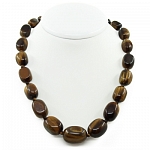 Его золотистые волнообразные переливы будут заметны отчетливее при огранке в форме кабошона. Шелковистый коричневый отлив отличает этот камень от минерала «кошачьего глаза». Оба камня относятся к разновидностям глазкового кварца, содержащего большую долю природных волокон. Но именно гидроксид железа, придающий теплый золотистый отлив тигрового глаза, выделяет его от остальных братьев по семейству. К ним относят бычий глаз, кошачий глаз и соколиный глаз. Цветовые оттенки каждого из них неповторимы, но сходство с глазами хищных животных предопределили их название.