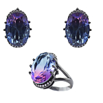 Комплект "Августина" фианит "турмалин"фиолетово - голубой, черная эмаль, размеры кольца: 17, 18, 19, 20