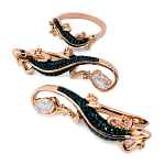 Комплект "Ящерки", фианит цвета "темный аметист", покрытие под золото, размеры кольца:17, 18, 19, 20