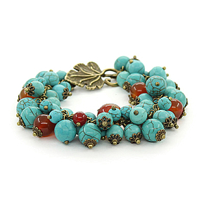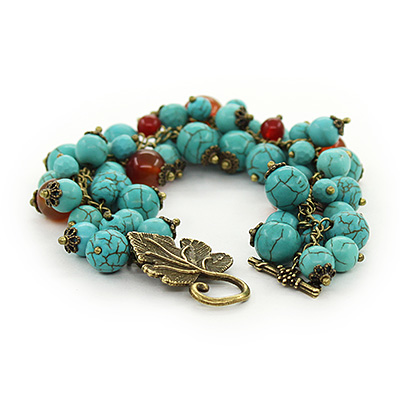Браслет авторский "Гроздь винограда" зеленая бирюза и сердолик