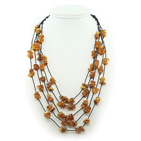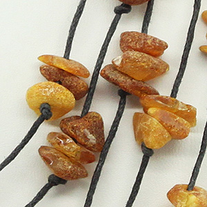 Эффектное ожерелье из 5-ти нитей натурального необработанного янтаря. Длина колье 50см. Застежка: петля