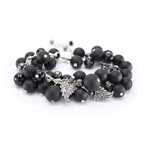 Эффектный браслет ручной работы выполнен из шунгита (10-12 мм), гематита (4-6 мм) и черного агата (6-10 мм). Роскошная вариация на тему вечного черного в сочетании матовых и глянцевых бусин. Размер браслета регулируется с помощью цепочки. подходит для запястья от 17 до 20 см. Фурнитура: ювелирный сплав.