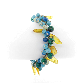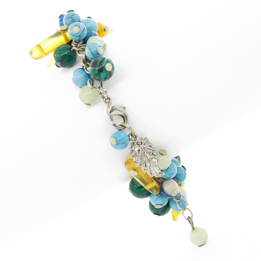 Браслет авторский "Сказка странствий" бирюза, малахит, агат, янтарь
