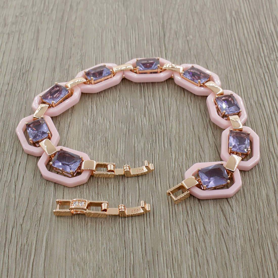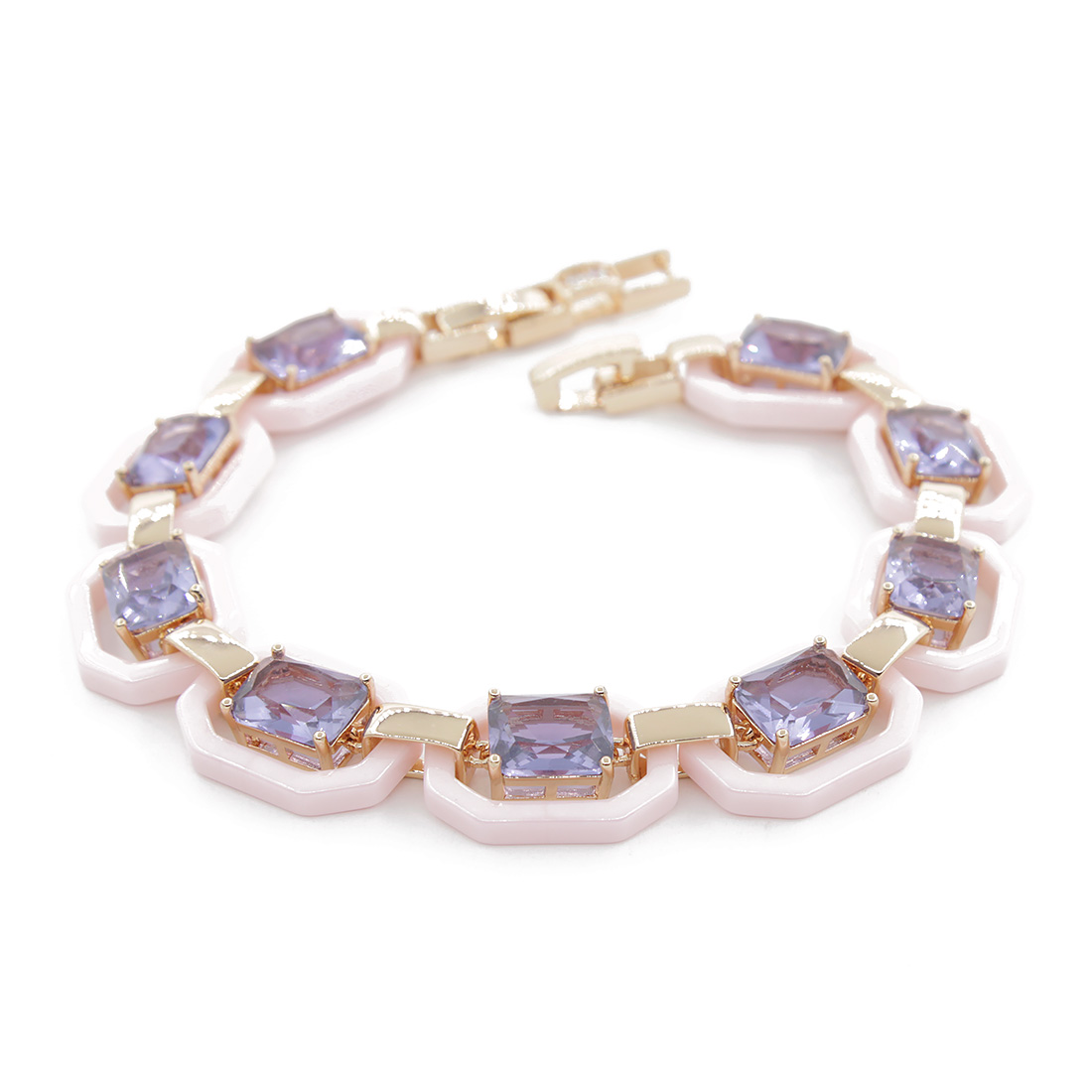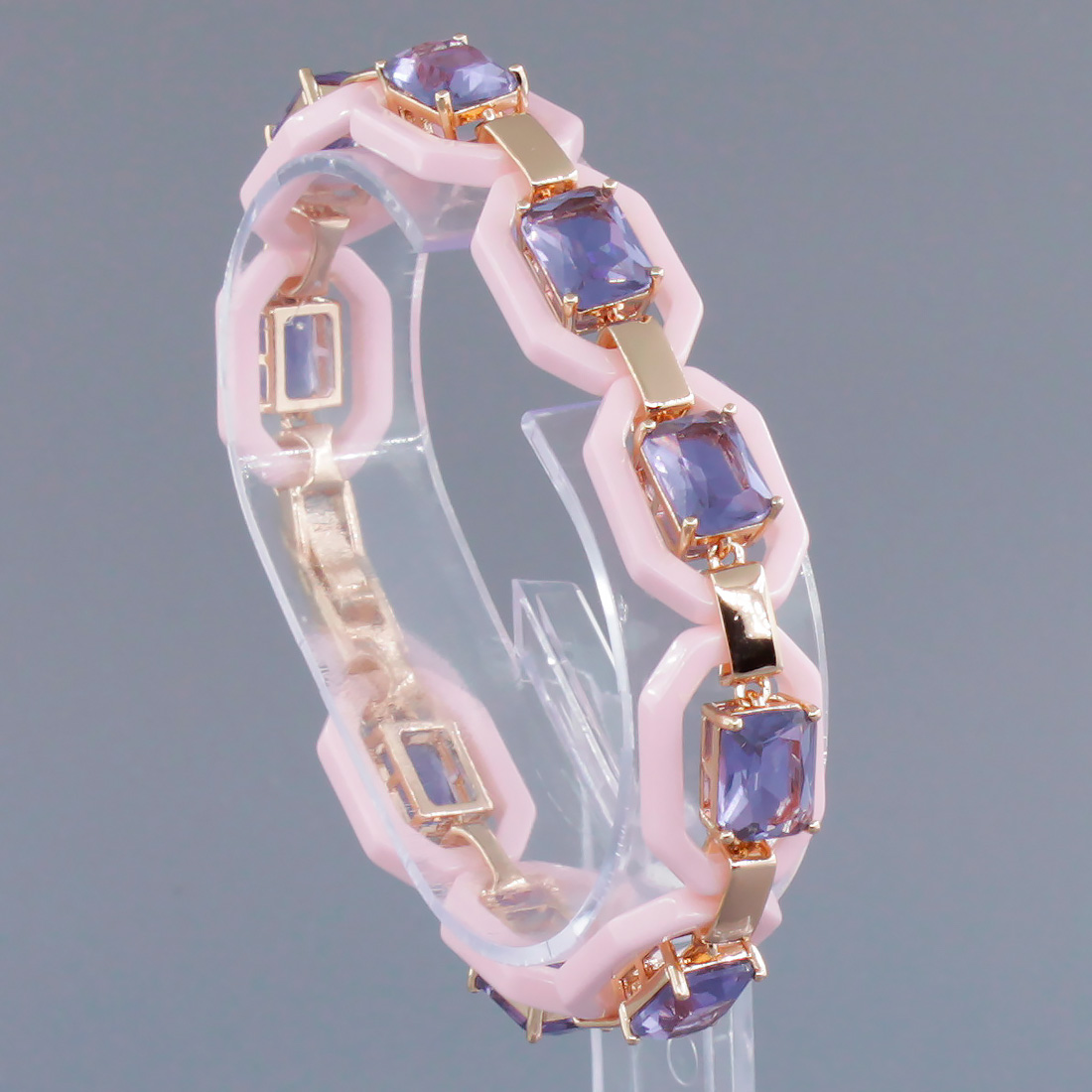 Браслет "Октагон" из розовой керамики с Александритом покрытие под золото, длина 18см