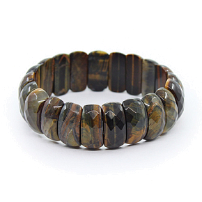 Крупный браслет из натурального соколиного глаза с огранкой. Прочная резинка позволяет с комфортом надевать и снимать украшение. Длина браслета 18см. Ширина 20мм.