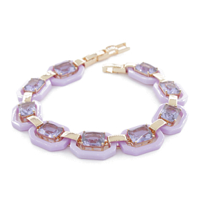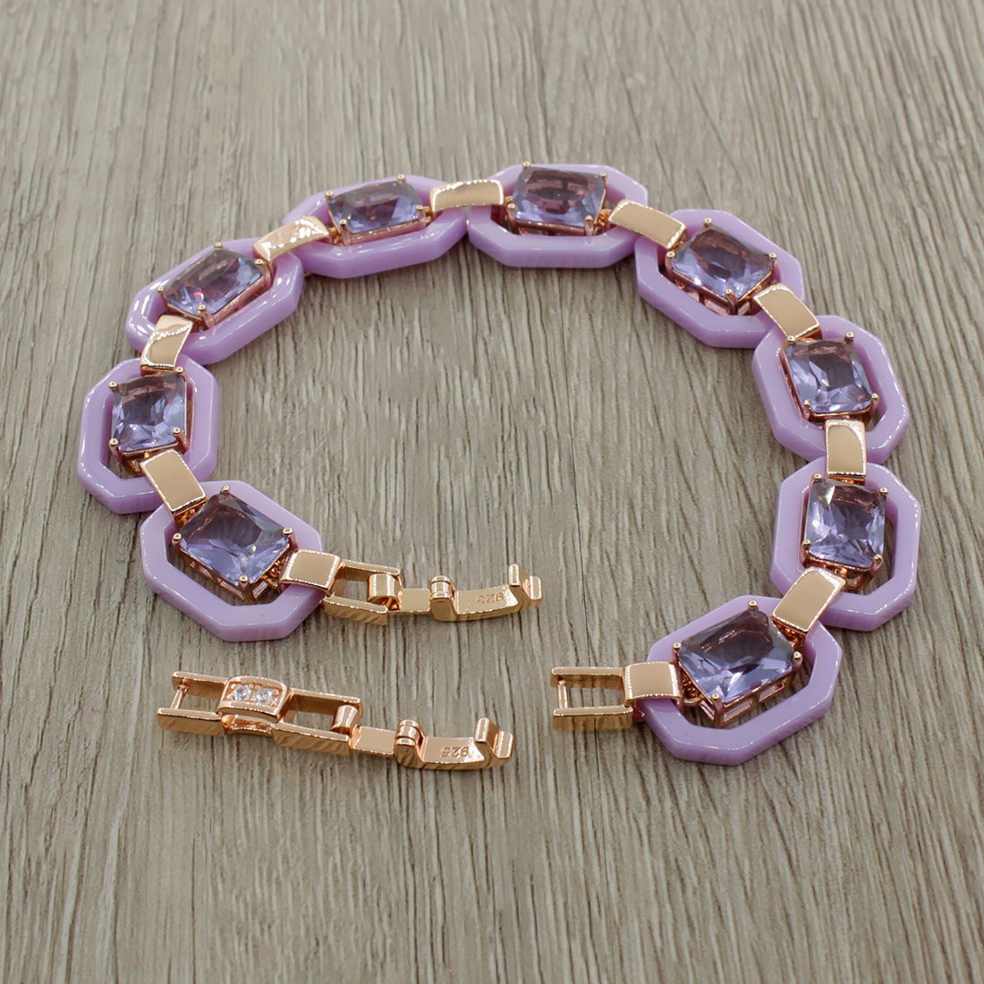 Браслет "Октагон" из фиолетовой керамики с Александритом покрытие под золото, длина 18см