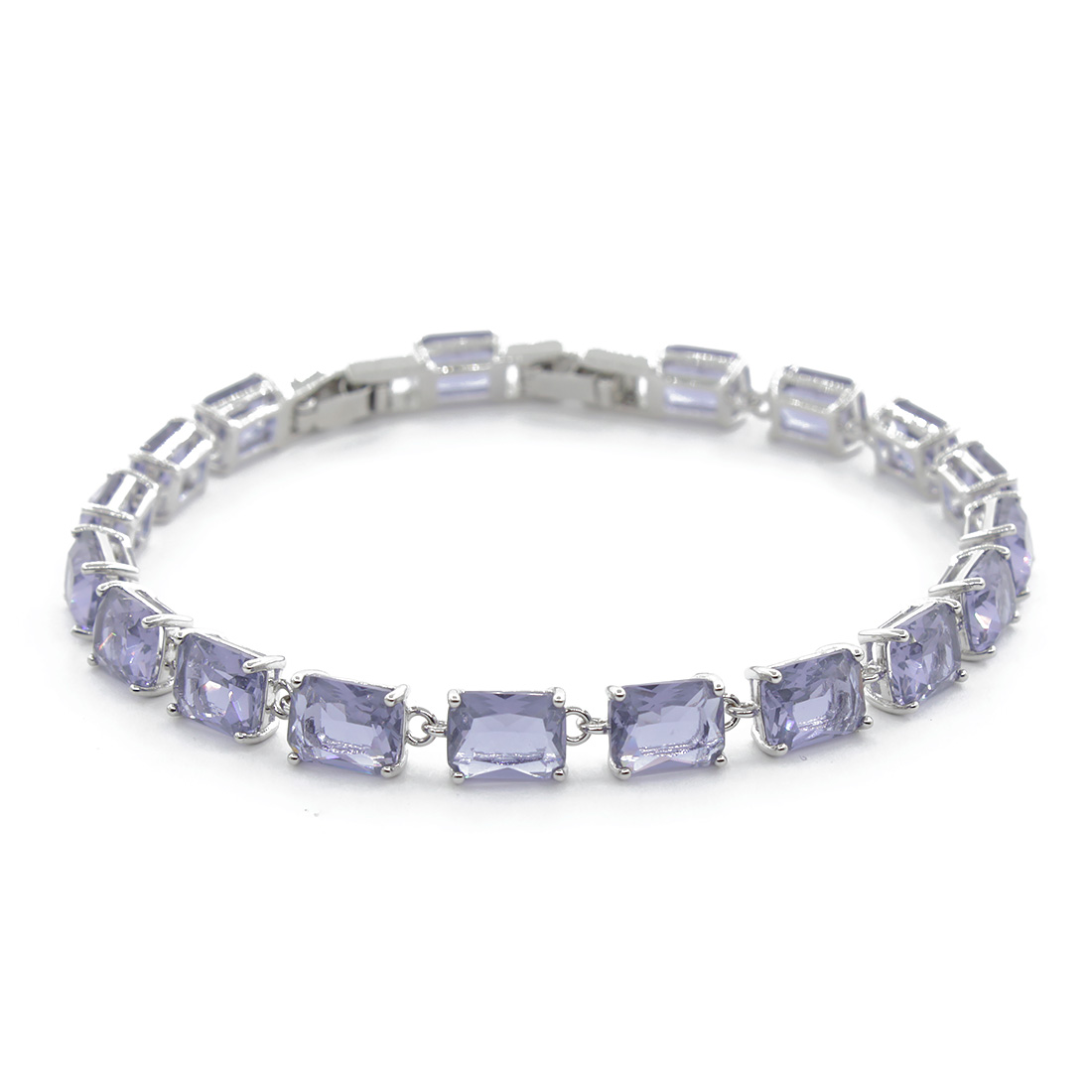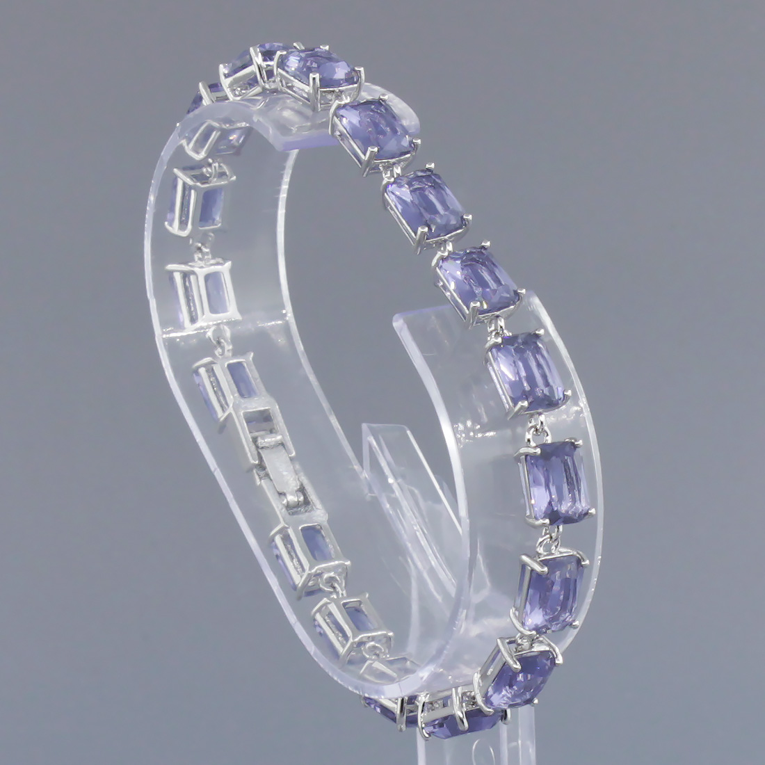 Стильный браслет с переливающимися Александритами и родированным покрытием. Длина браслета 17,5см, с дополнительным звеном 19.5см. Размер вставок из Александрита 6х8мм.
