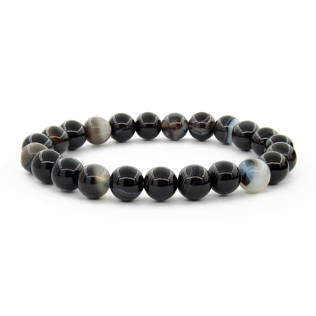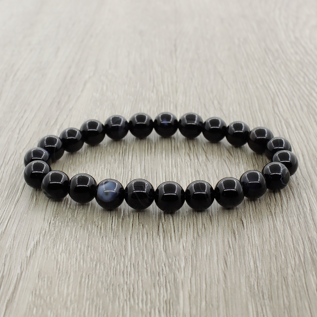 Агат черный полосатый браслет 8мм, браслет "Классика" длина 17см