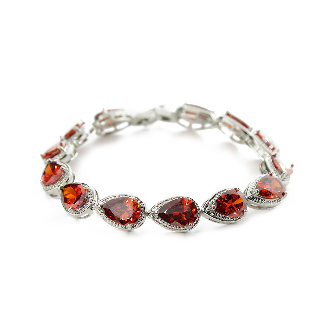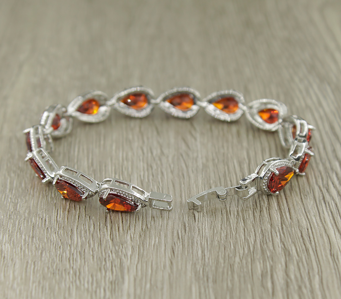 Невозможно яркий и стильный браслет с фианитами цвета "гранат". Длина изделия 19см. Размер фианитов 8х10мм.