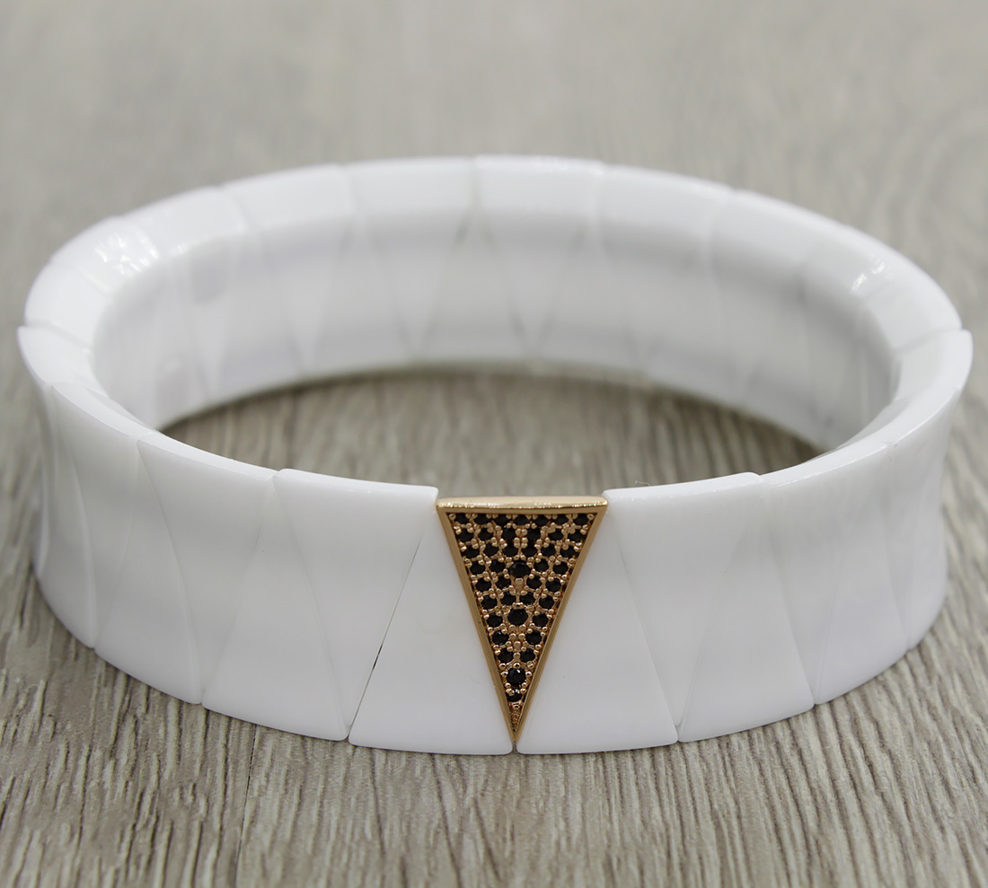 Браслет "Клеопатра" керамика белая, вставка под золото, 19см