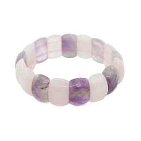 Браслет из натуральных аметиста и розового кварца в привлекательной огранке. Ширина 20мм, длина 19см.