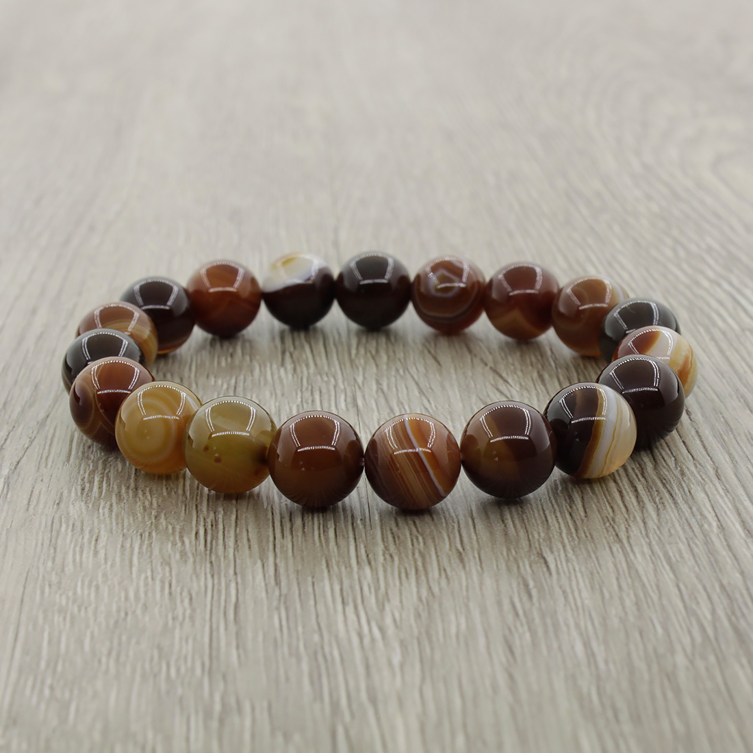 Агат коричневый 10мм, браслет "Классика" длина 18см