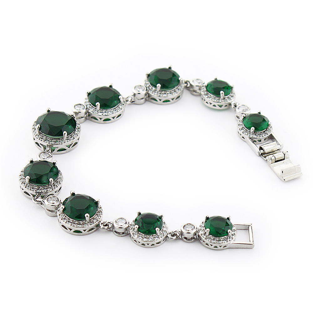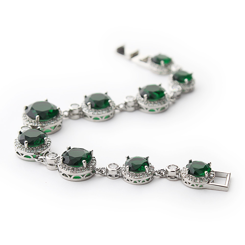 Браслет "Екатерина" с крупными фианитами цвета "изумруд"