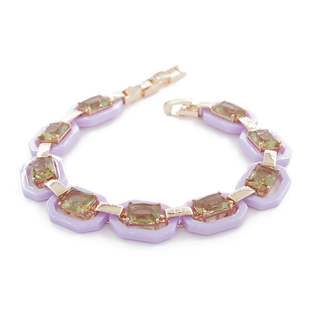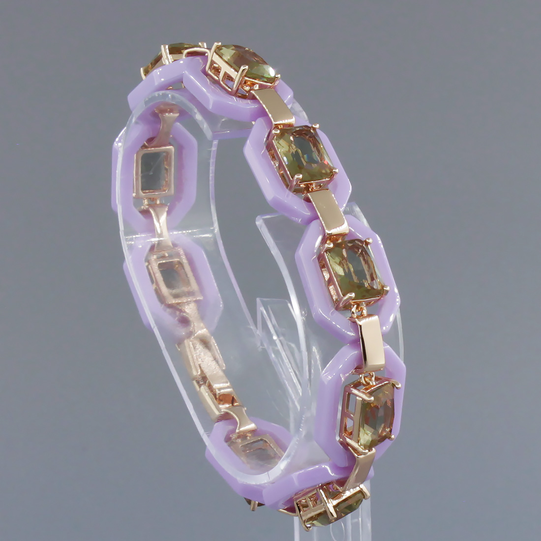 Браслет "Октагон" из фиолетовой керамики с Султанитом покрытие под золото, длина 18см
