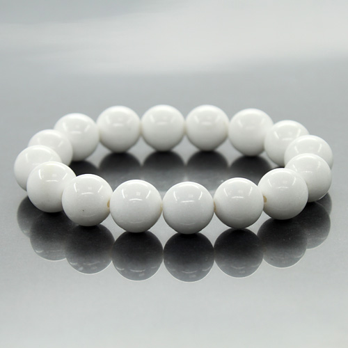 Браслет на резинке, выполнен из натурального кальцита, называемого белым агатом. Диаметр шарика 12мм. Длина украшения 16см.