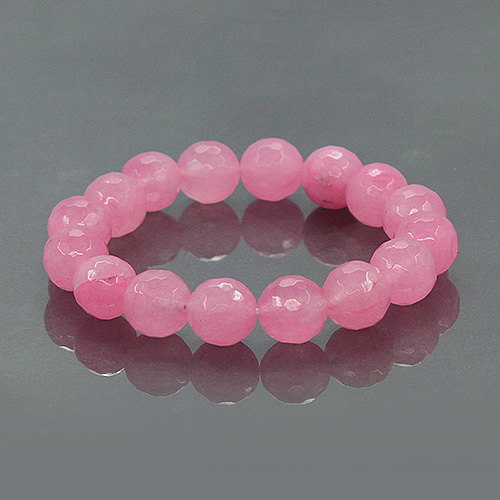 Браслет "Классика" кварц розовый, круглые граненые 12мм