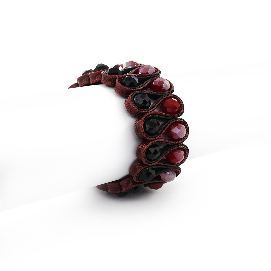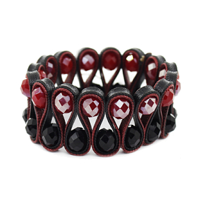 Браслет собран из чешского стекла, имитации шпинели. Граненые черные и красные бусинки играют на свету разными цветами. . Браслет на резинке. Длина браслета 16...18см.