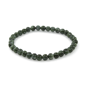 Браслет выполнен из натурального серафинита. Браслет на резинке. Диаметр бусин 5мм. Длина украшения 18см.