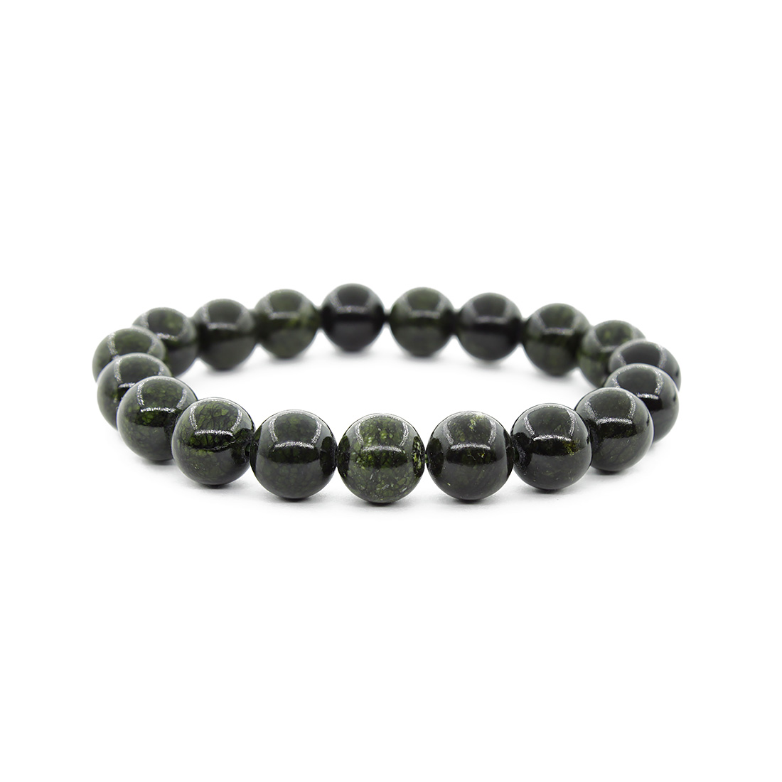 Змеевик (Серпентин) тёмный 10мм, браслет "Классика" длина 17см