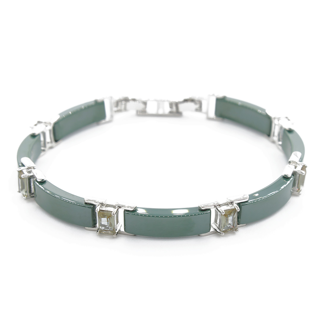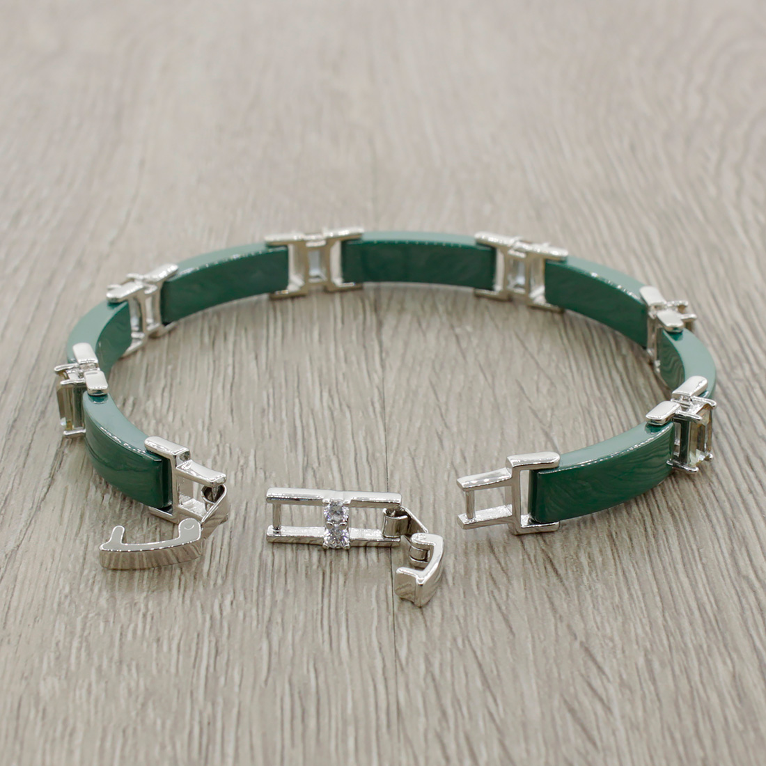 Браслет "Лилу" из зеленой керамики с Султанитом покрытие светлый металл