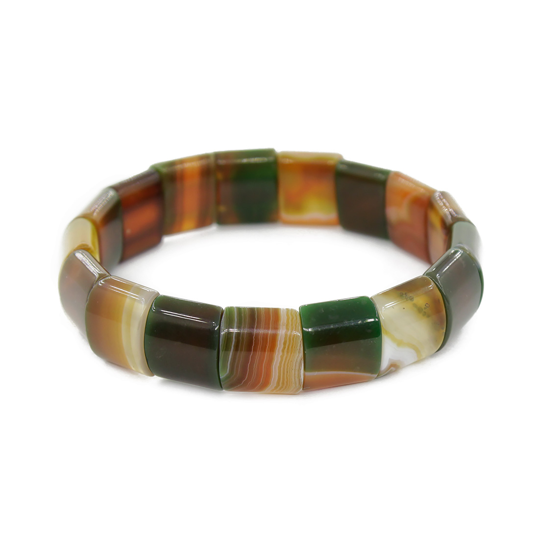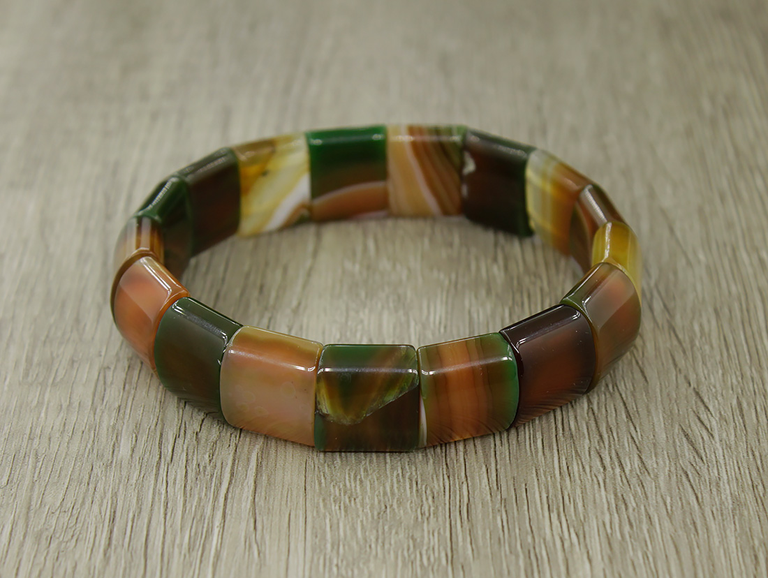 Браслет из натурального коричнево-зеленого агата на резинке. Ширина браслета 15мм. Длина браслета 21см.