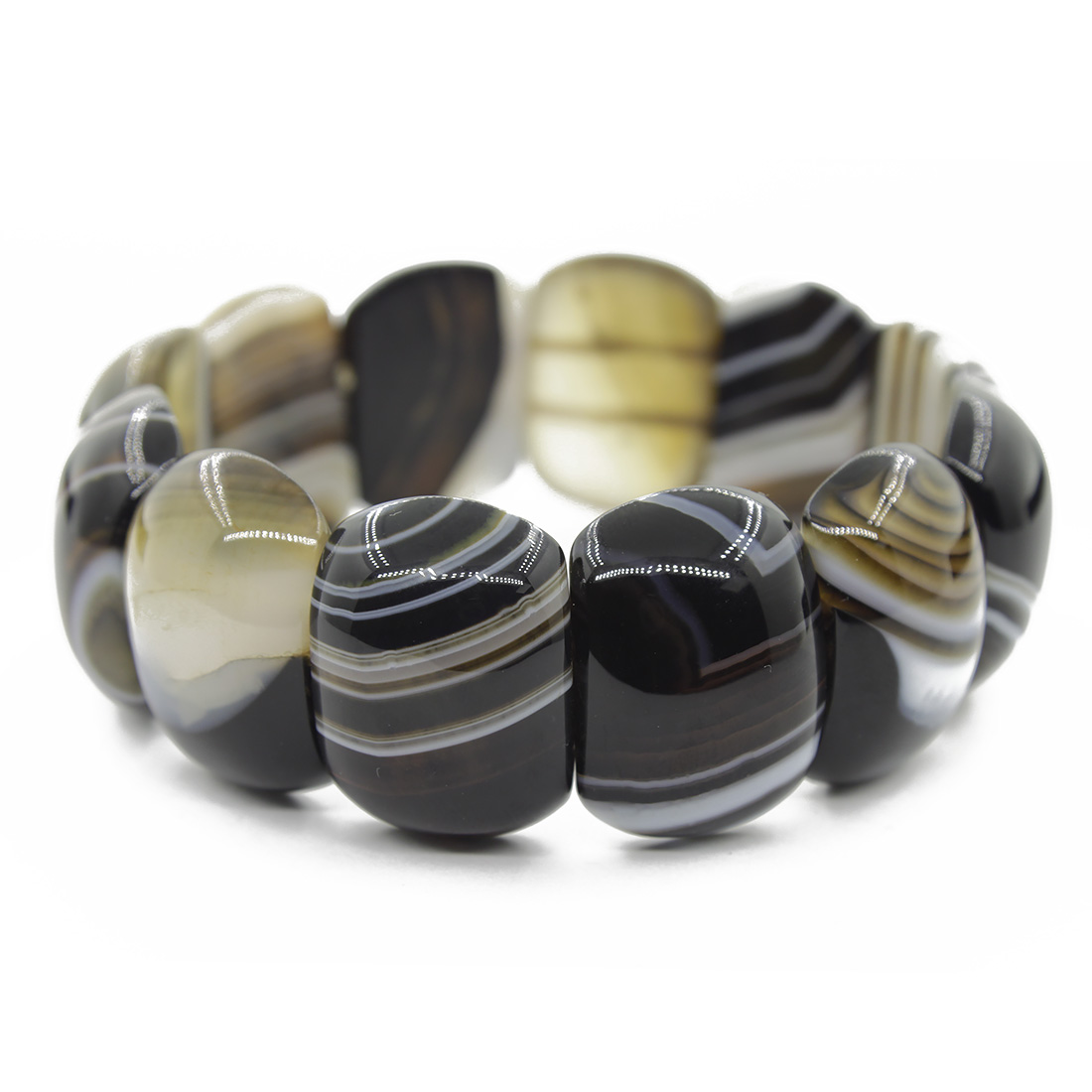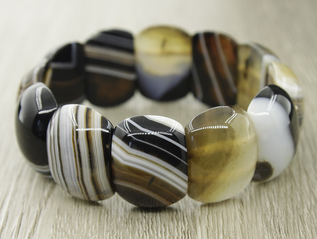 Массивный браслет на резинке выполнен из натурального агата с идеальной полировкой и ярким блеском. Длина браслета 21см, ширина 25мм. Рисунок на камне может немного отличаться от фото.