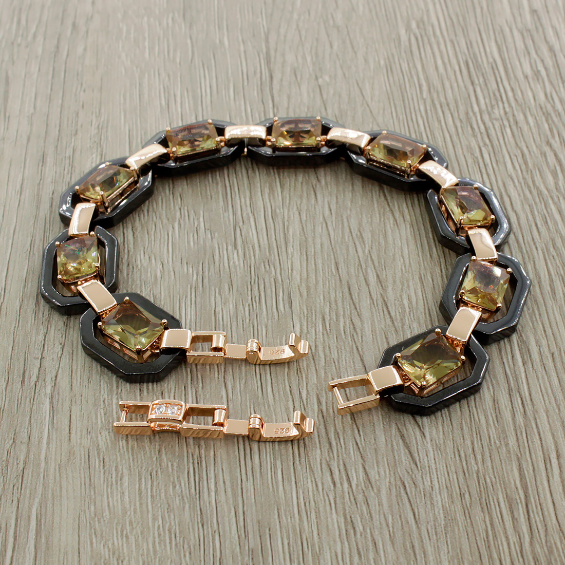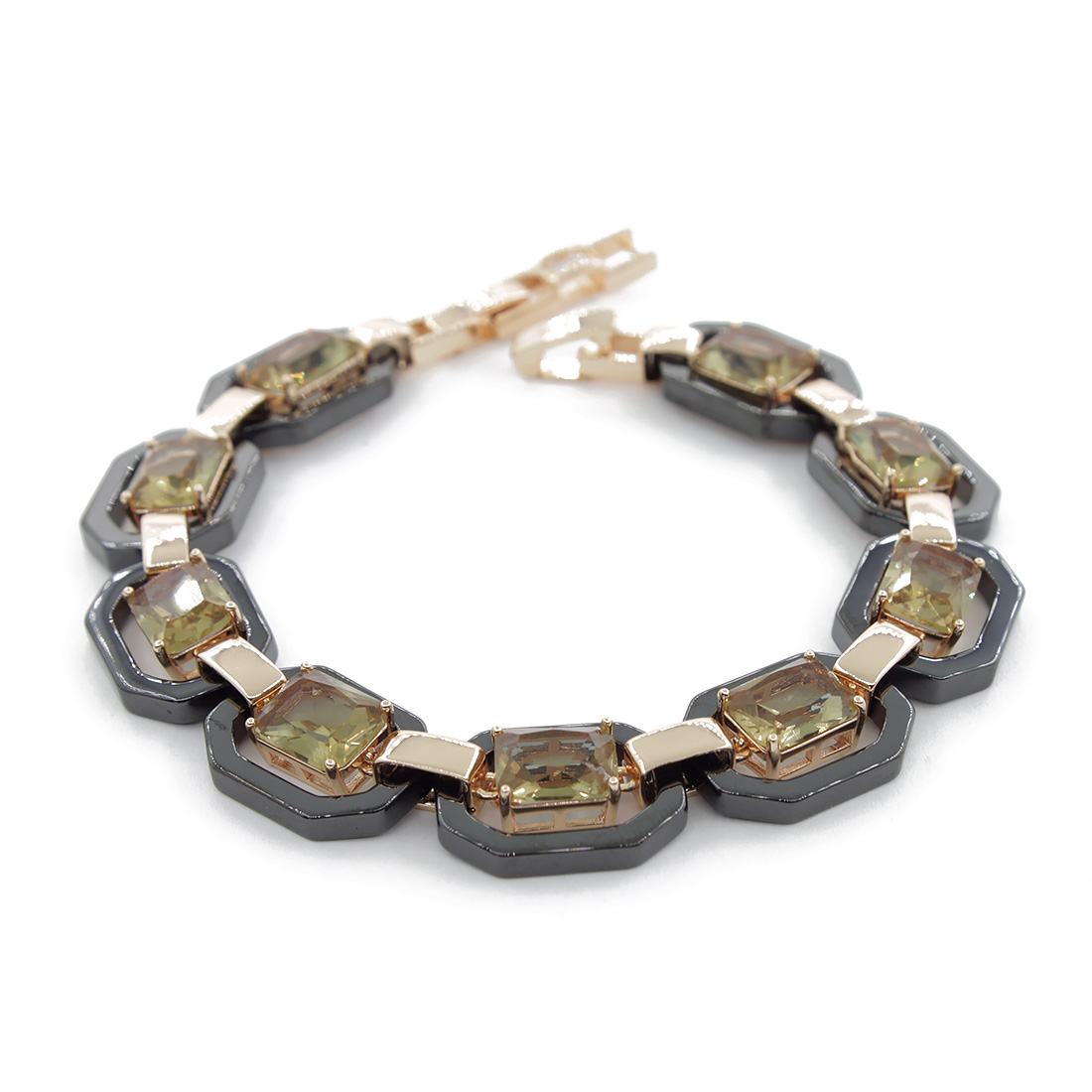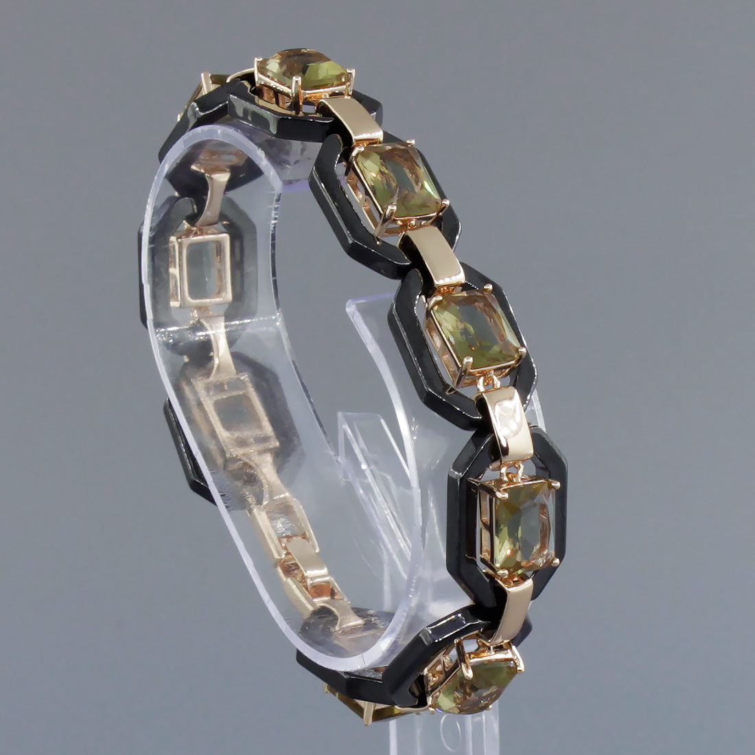 Браслет "Октагон" из черной керамики с Султанитом покрытие под золото, длина 18см