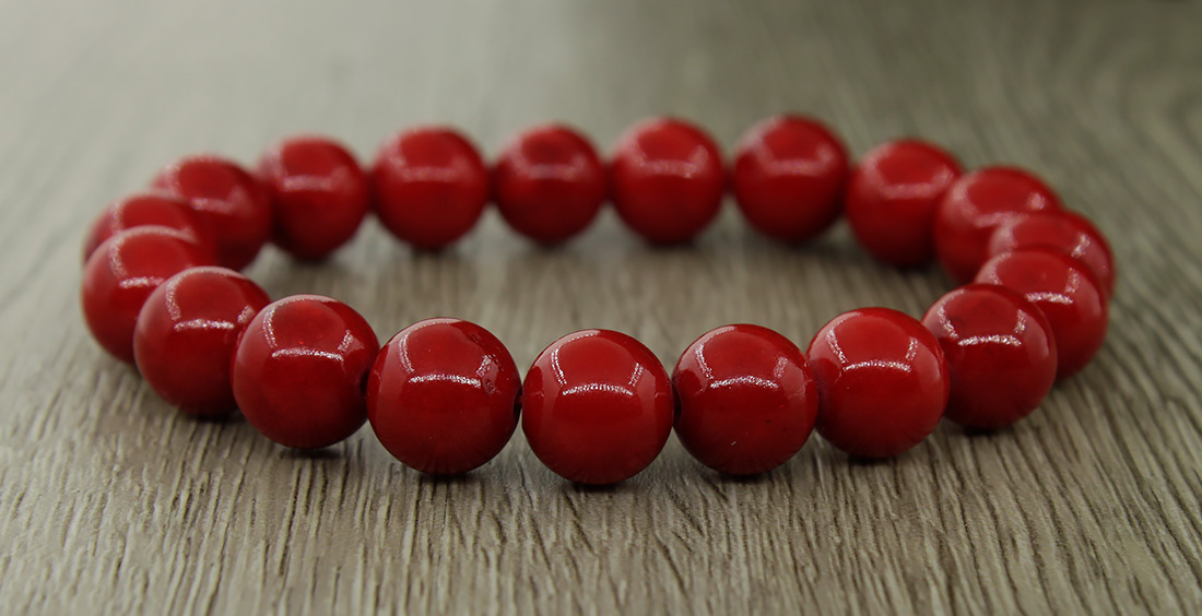 Коралл красный (имитация) 10мм, браслет "Классика" длина 18см