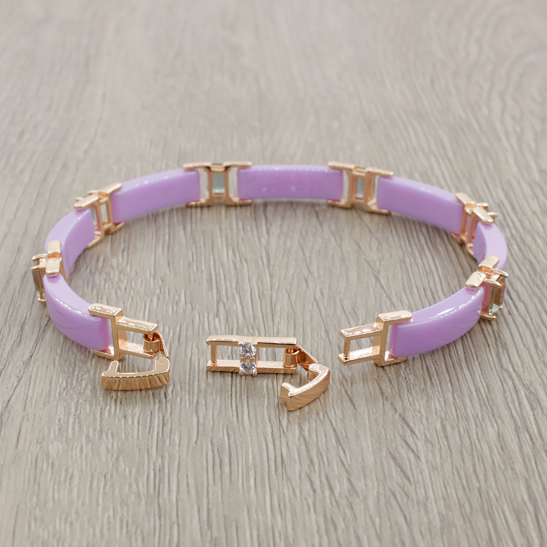 Браслет "Лилу" из фиолетовой керамики с Султанитом покрытие под золото, 20см