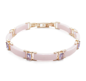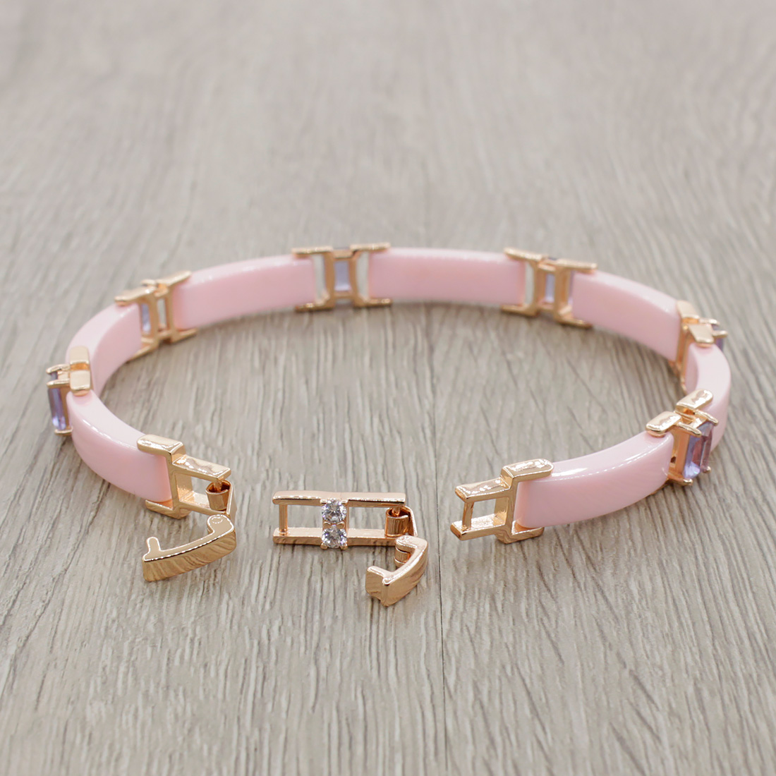 Браслет "Лилу" из розовой керамики с Александритом покрытие под золото