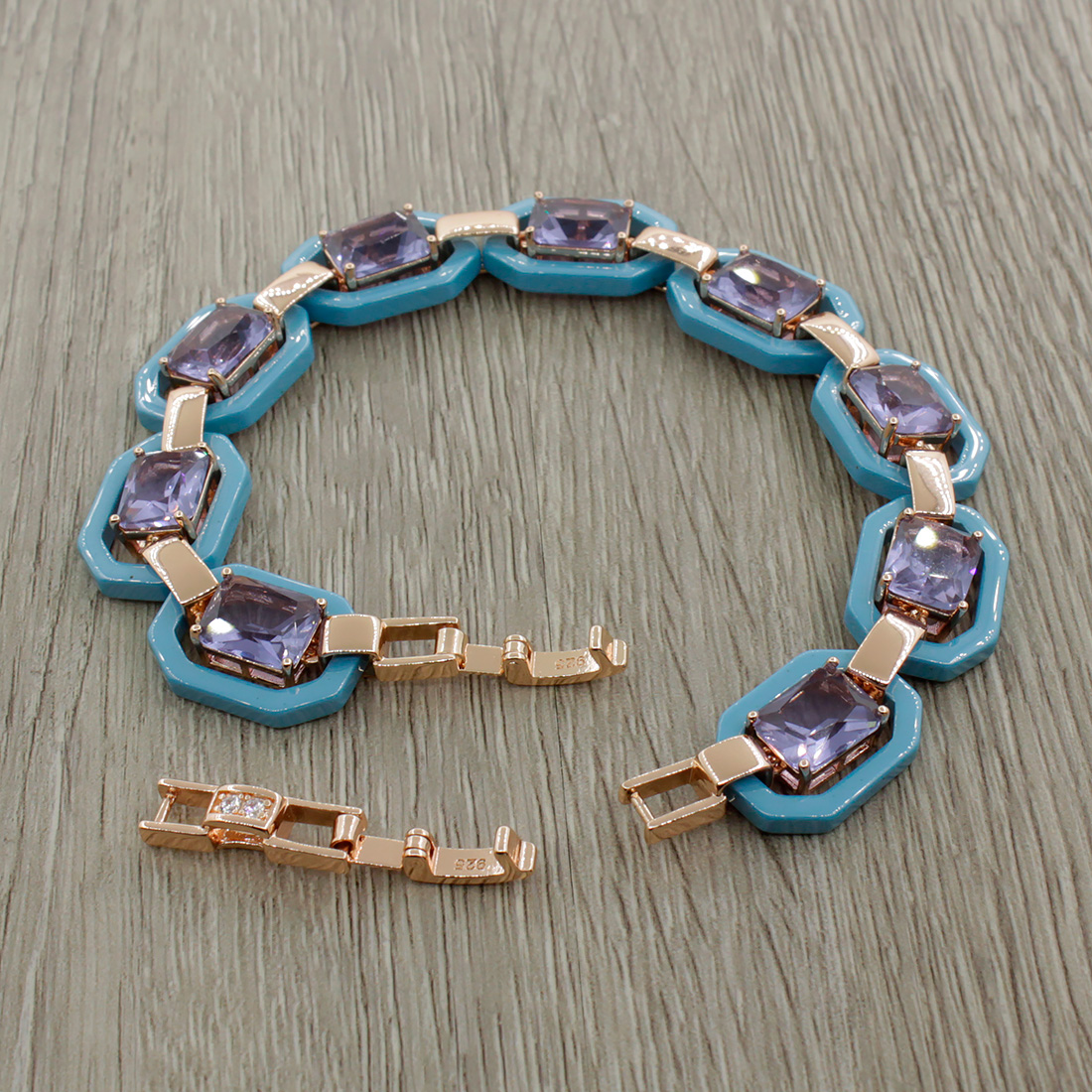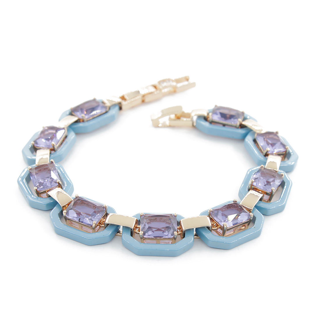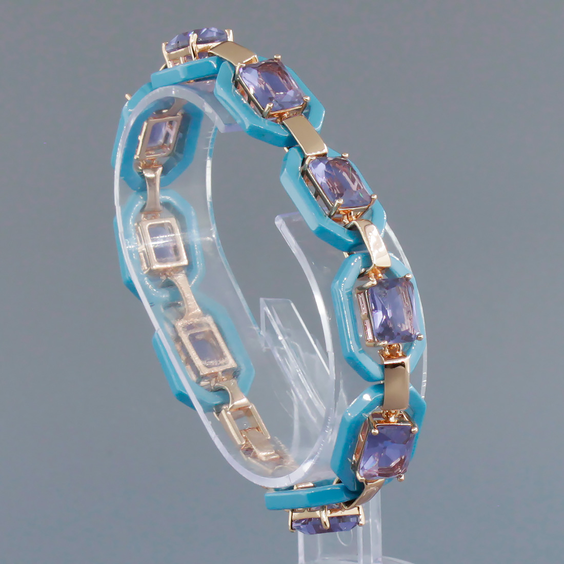 Браслет "Октагон" из голубой керамики с Александритом покрытие под золото, длина 18см