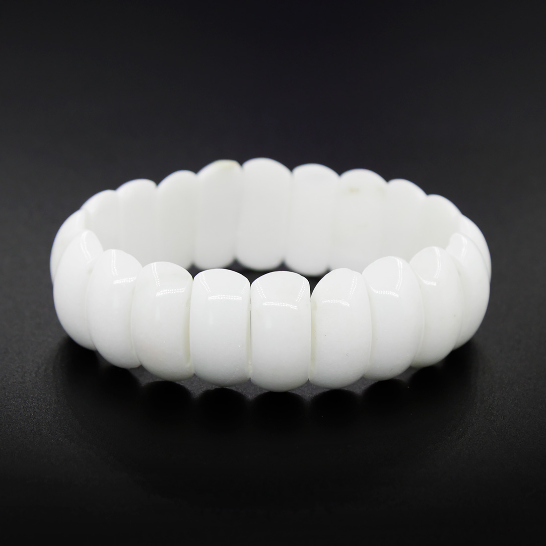Изящный браслет из натурального белого агата. Длина браслета 18см, ширина 21мм.