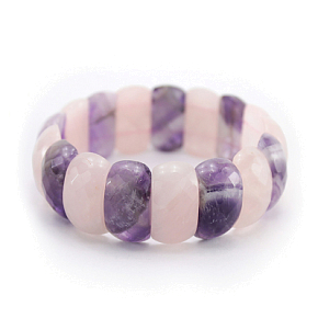 Браслет "Эмма" из натуральных аметиста и розового кварца в привлекательной огранке. Ширина 25мм, длина 21см.
