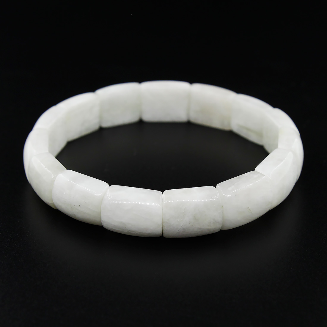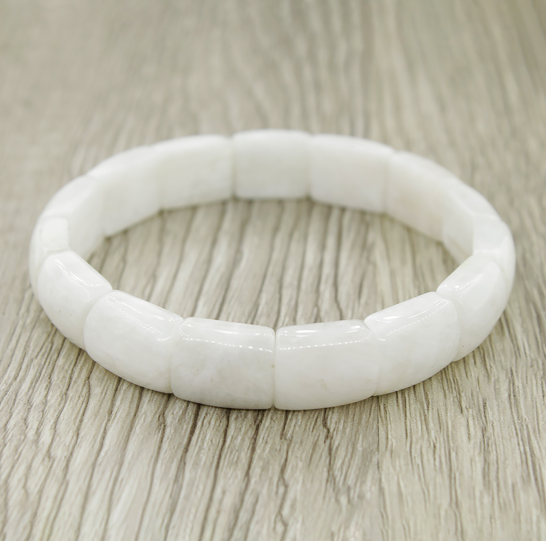 Стильный браслет из натурального лунного камня дополнит Ваш повседневный или праздничный образ. Ширина браслета 11мм. Длина браслета 20см.