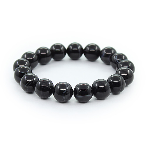 Агат черный (Бразилия) 12мм, браслет "Классика" длиной 17см