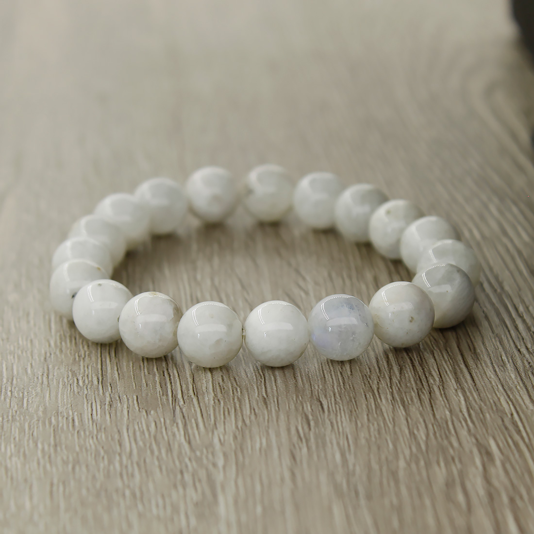 Этот браслет сделан из шариков натурального лунного камня. Браслет на резинке. Диаметр шарика 10мм. Длина 17см.