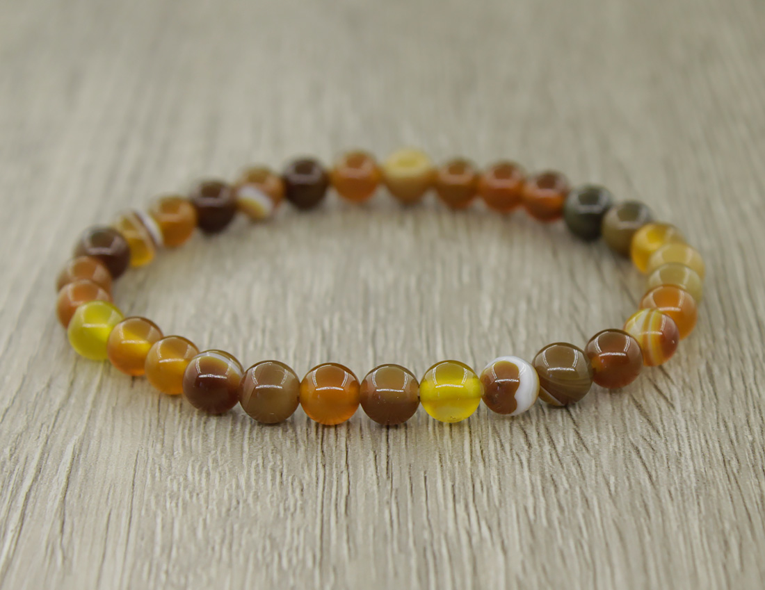 Агат коричнево-бежевый браслет "Классика" 6мм