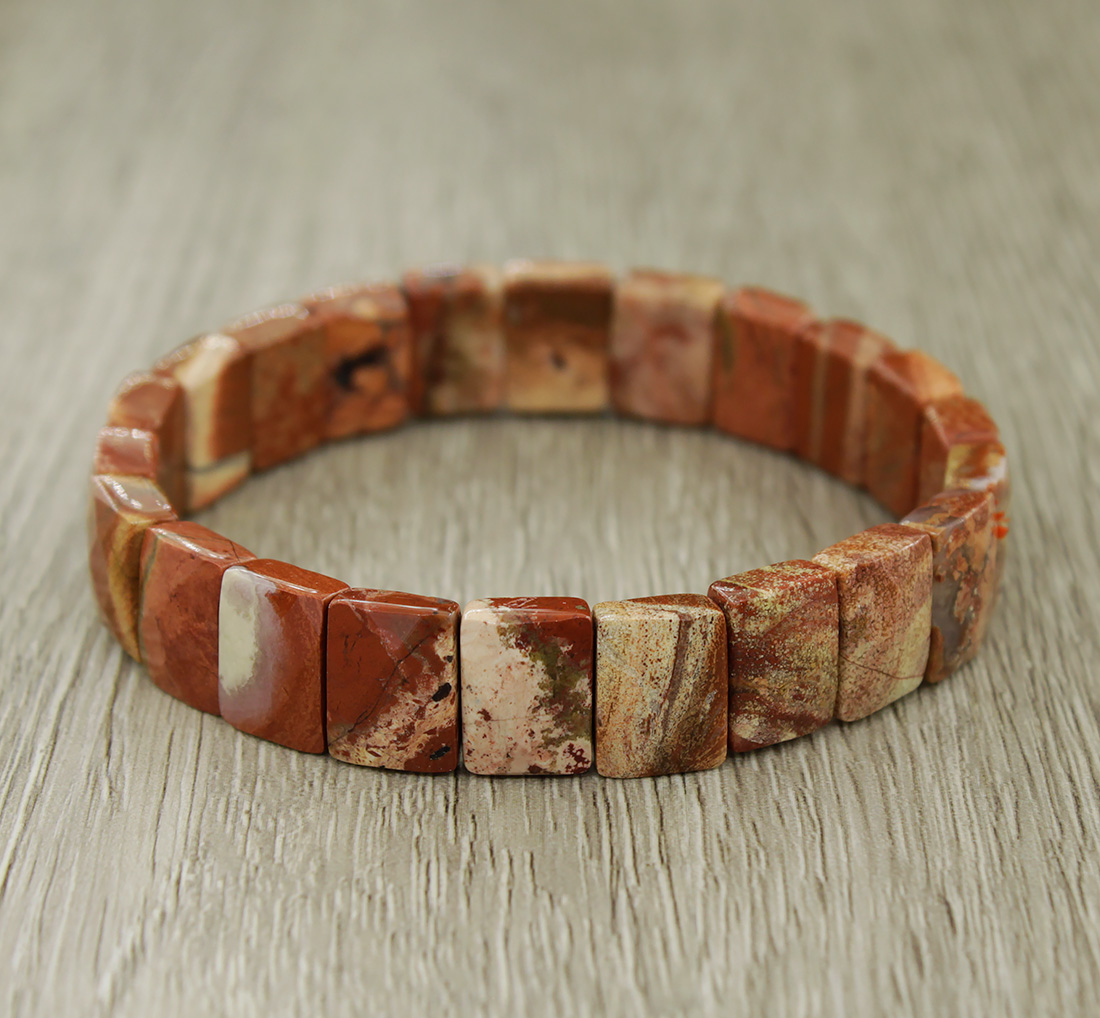 Яшма красно-бежевая браслет "Квадро" 19см