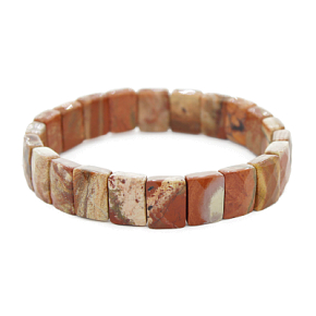Браслет выполнен из натуральной ограненой красно-бежевой яшмы. Ширина браслета 12мм. Длина браслета - 19см.