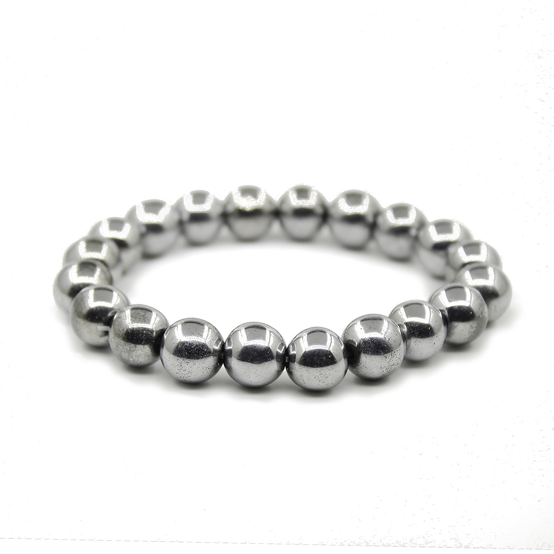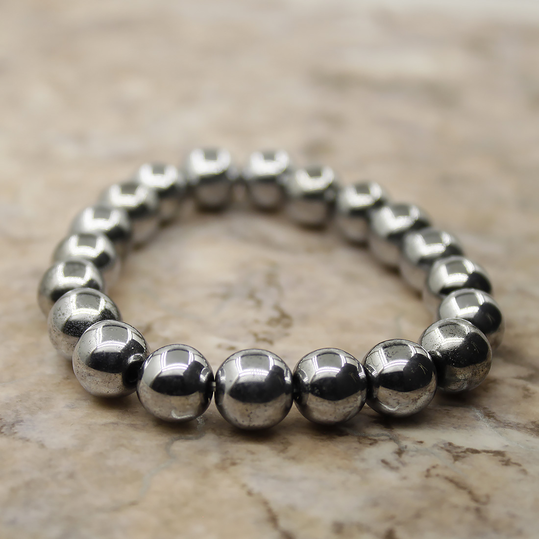 Браслет выполнен из натурального гематита. Браслет на резинке. Диаметр шарика 10мм. Длина 17см.