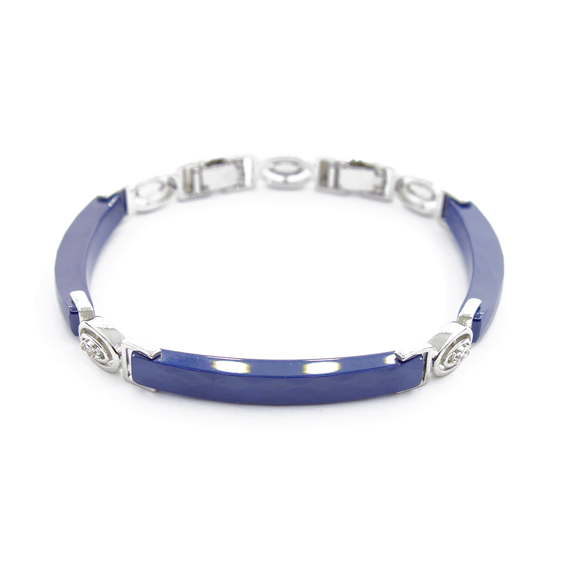 Браслет "Лили" из синей керамики покрытие светлый металл