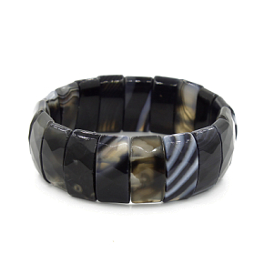 Браслет с крупной огранкой из натурального черного агата. Длинна 23см. Ширина 23-25мм. Цвет может отличаться от фото.