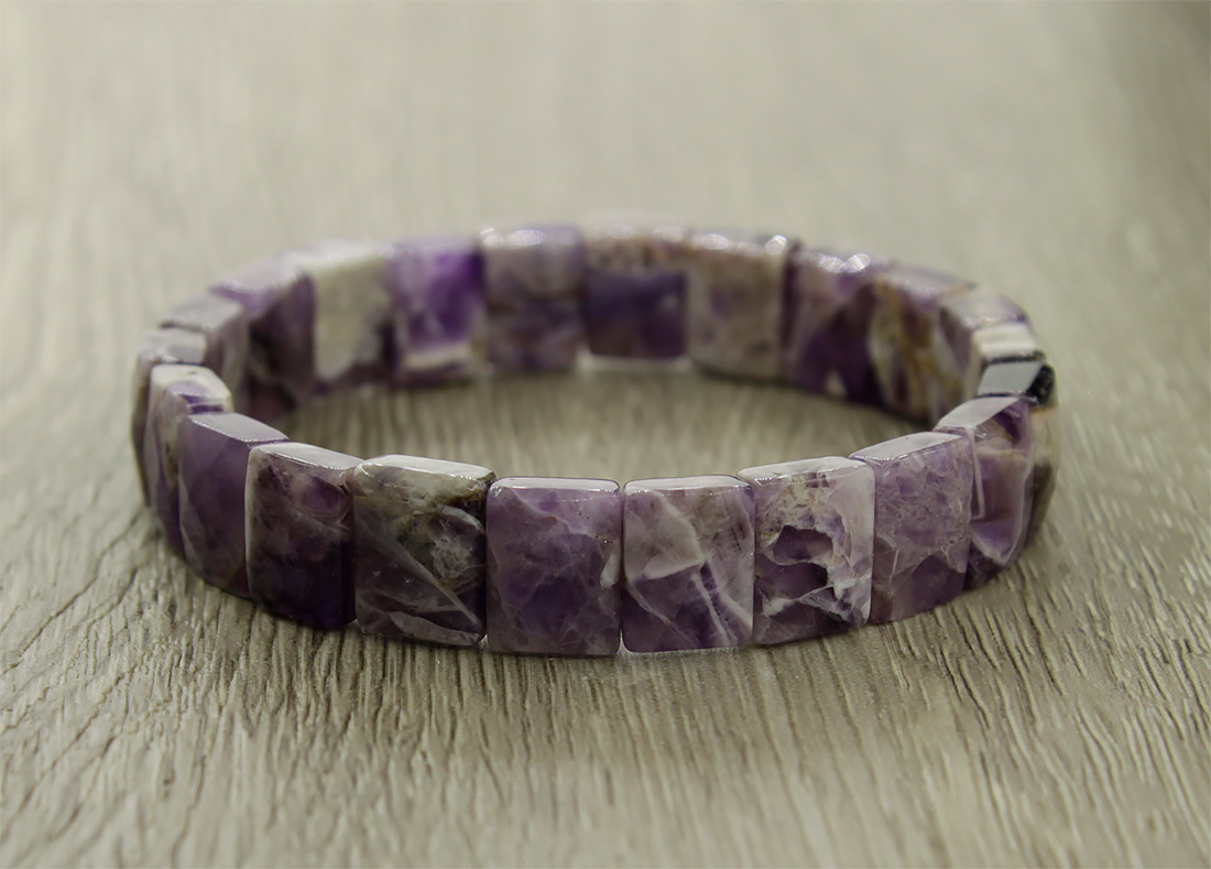 Браслет "Квадро" аметист (Бразилия), квадратные граненые бусины 13мм