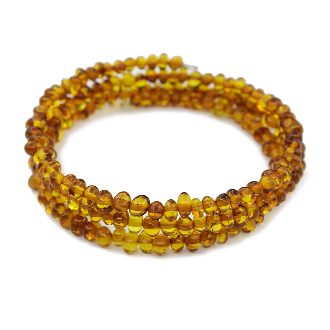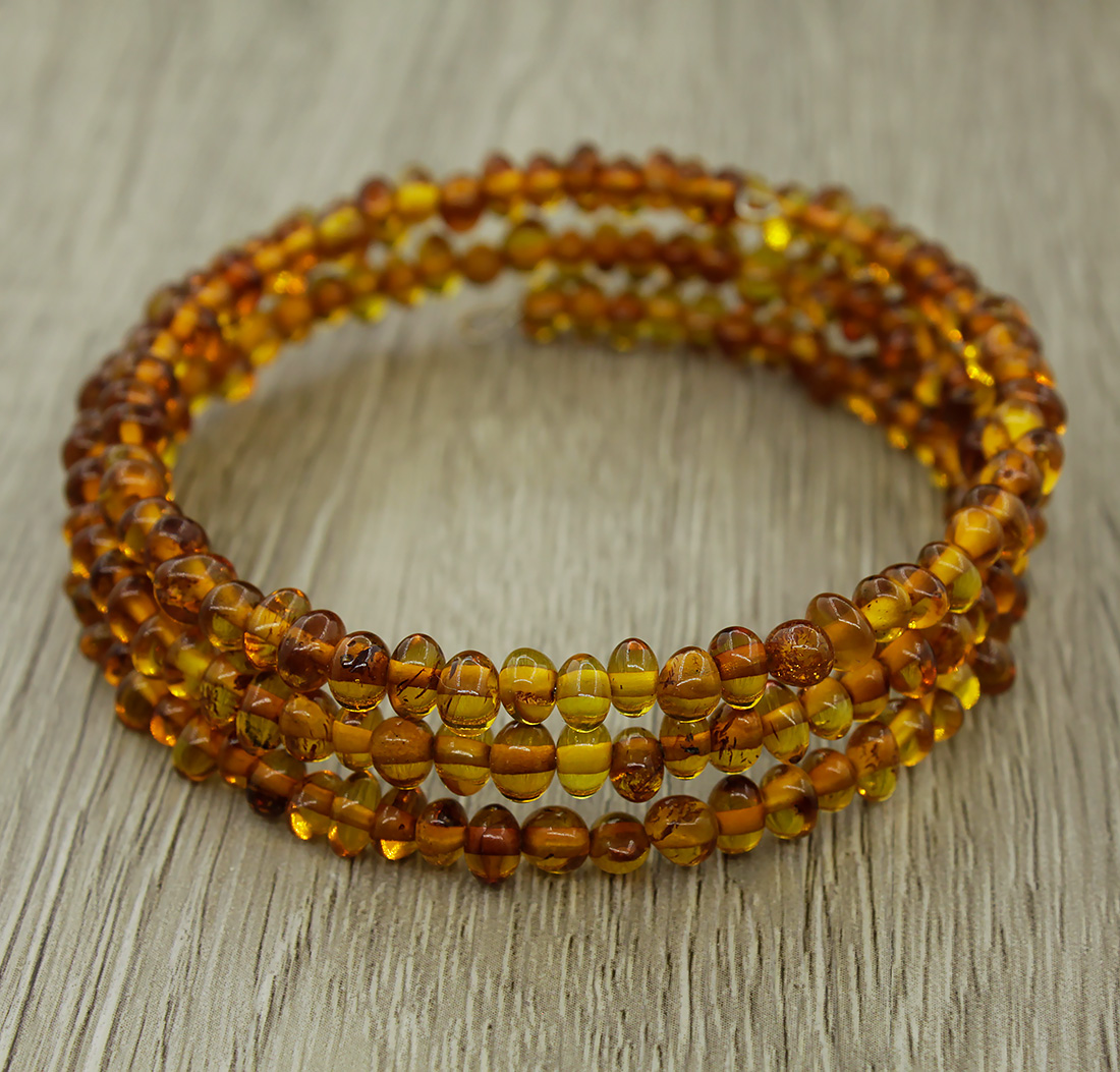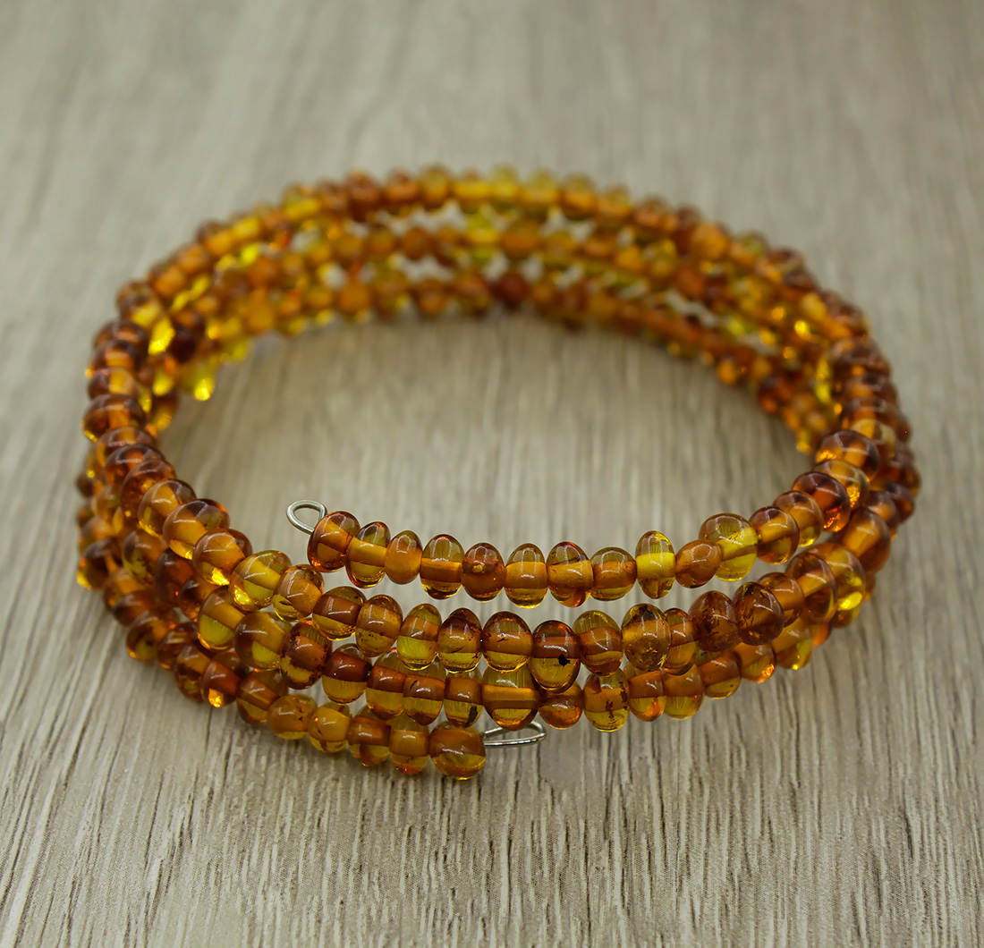 Браслет из натурального янтаря насыщенного оранжевого оттенка, на спирали в три ряда. Особенно хорошо подойдет к Вашему повседневному образу. Средний размер бусин 3x5мм. Браслет безразмерный.